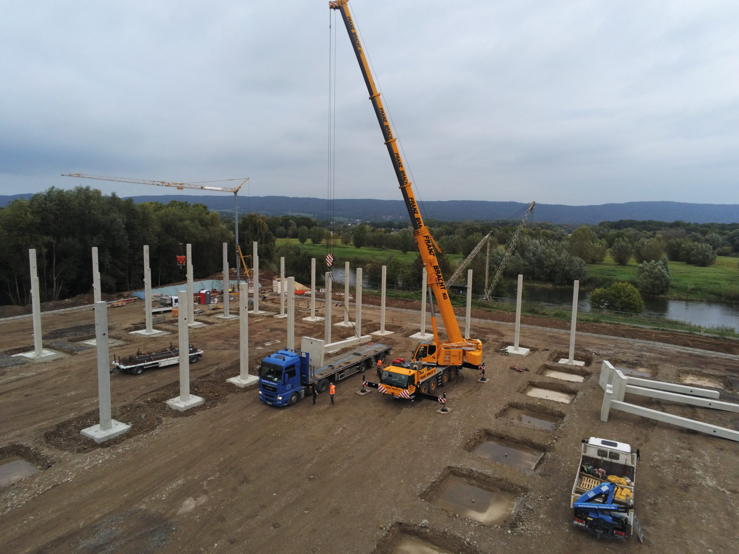 Ob Stützen, Binder oder Wandelemente: Wir planen & fertigen im eigenen Haus und liefern & montieren direkt auf der Baustelle.